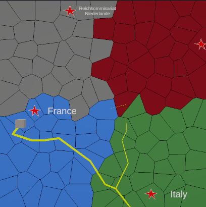 Instead of having a bunch of colours displayed to the player. I made it so that tiles can have a display colour only visible to the player. This can for example create countrie, like in the picture where i crudely recreated Hearts of Iron IV.